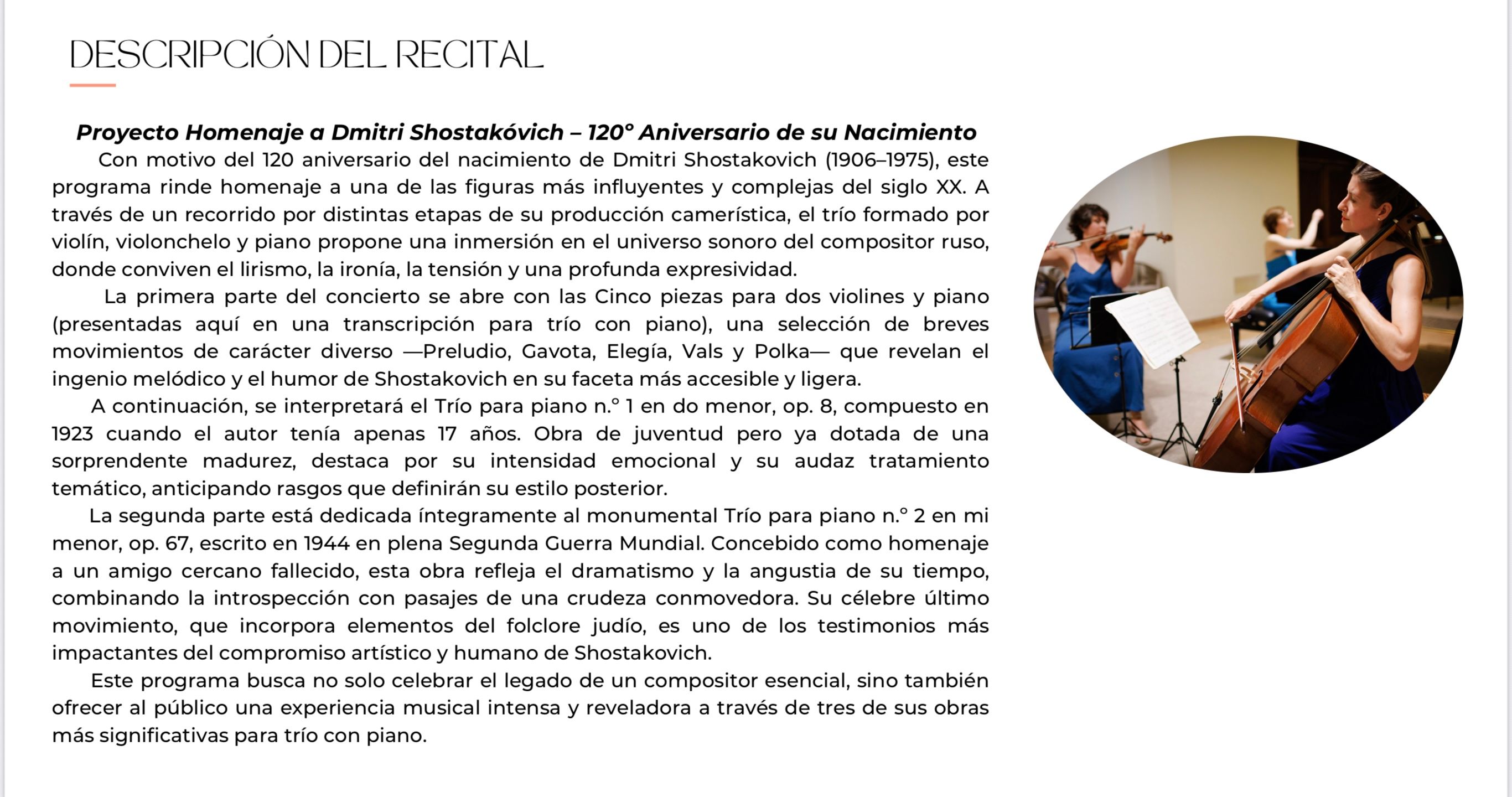 Trío Tríptic, 01/07/2026, Los tríos con piano de Shostakovich: “Del amor a la Guerra” Son Marroig, Deia, 20:00